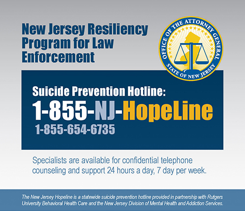 Addressing a rise in reported police suicides nationwide, Attorney General Grewal issued a law enforcement directive – known as the “Officer Resiliency Directive” – implementing the New Jersey Resiliency Program for Law Enforcement (“NJRP-LE’), a first-in-the-nation statewide program to train officers in resiliency and to become better equipped to handle the daily stress of police work that, when left unchecked, may lead to physical ailments, depression, and burnout.